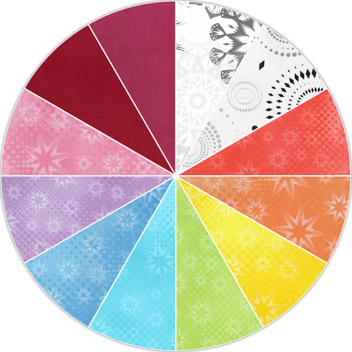 The Wedding Ring Table Runner in ColorStock Cottons fabrics includes (12) Skus. This bundles includes 1/4 yard of each of the 12 fabrics. If you would like more than 1/4 yard, please order the number of 1/4 yard bundles you would like, and we will add them together and cut the total yardage. (i.e. If you would like 3/4 yard of all 12 pieces, please order (3) of this product.) Shipping is included for US Customers. For international customers, we will add the product to your box, and calculate the total shipping and bill you accordingly.