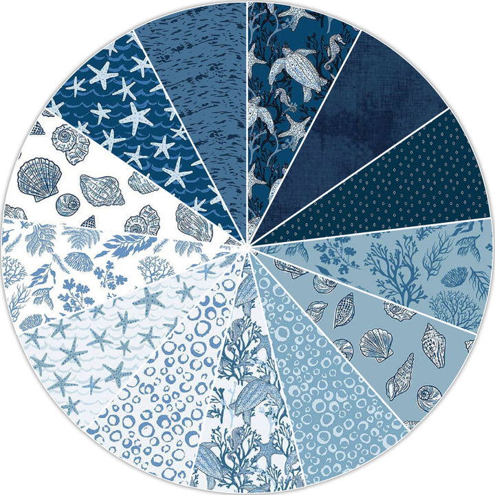 The Wedding Ring Table Runner in Oceans Oasis fabrics includes (13) Skus. This bundles includes 1/4 yard of each of the 13 fabrics. If you would like more than 1/4 yard, please order the number of 1/4 yard bundles you would like, and we will add them together and cut the total yardage. (i.e. If you would like 3/4 yard of all 13 pieces, please order (3) of this product.) Shipping is included for US Customers. For international customers, we will add the product to your box, and calculate the total shipping and bill you accordingly.