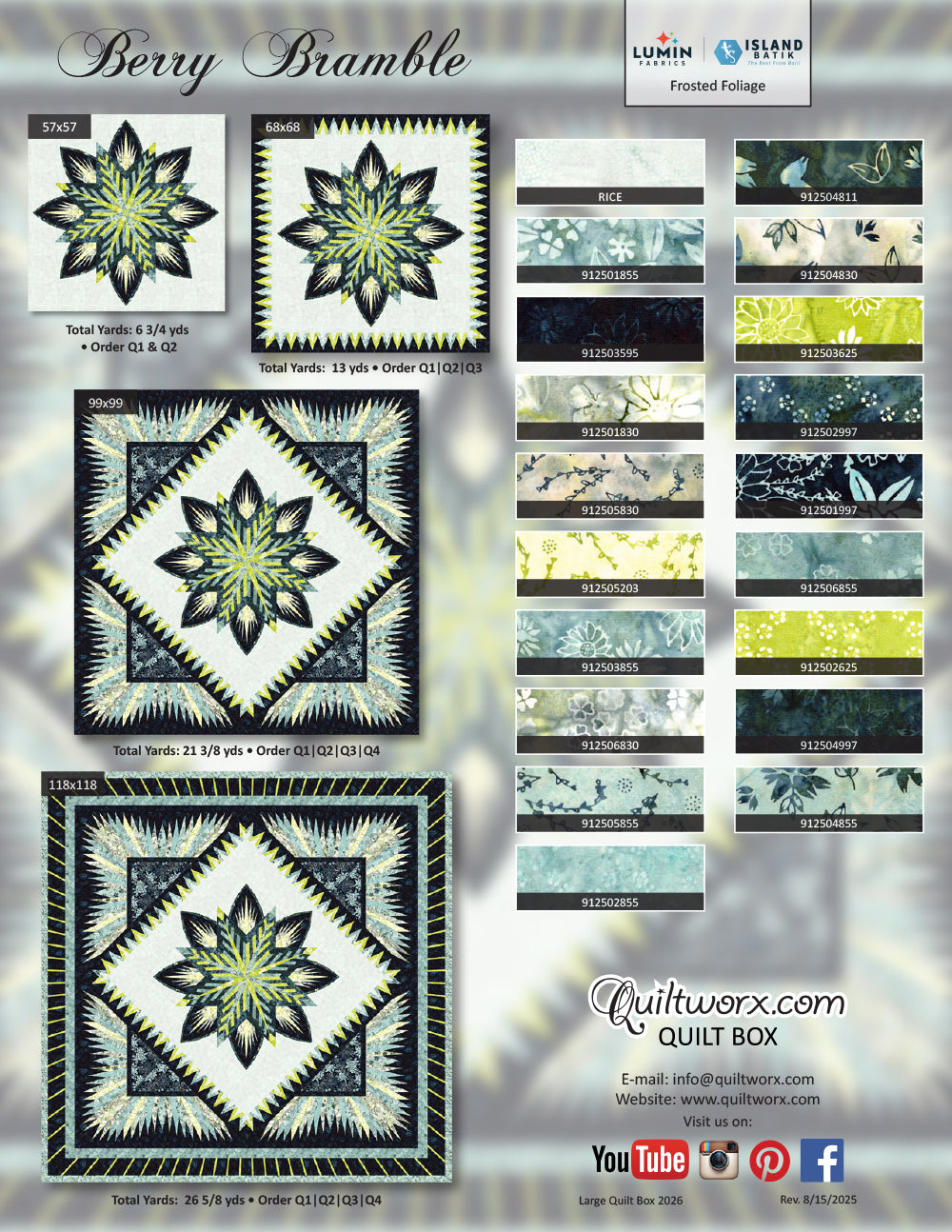 Please Contact Us for any questions/concerns at orders@quiltworx.com