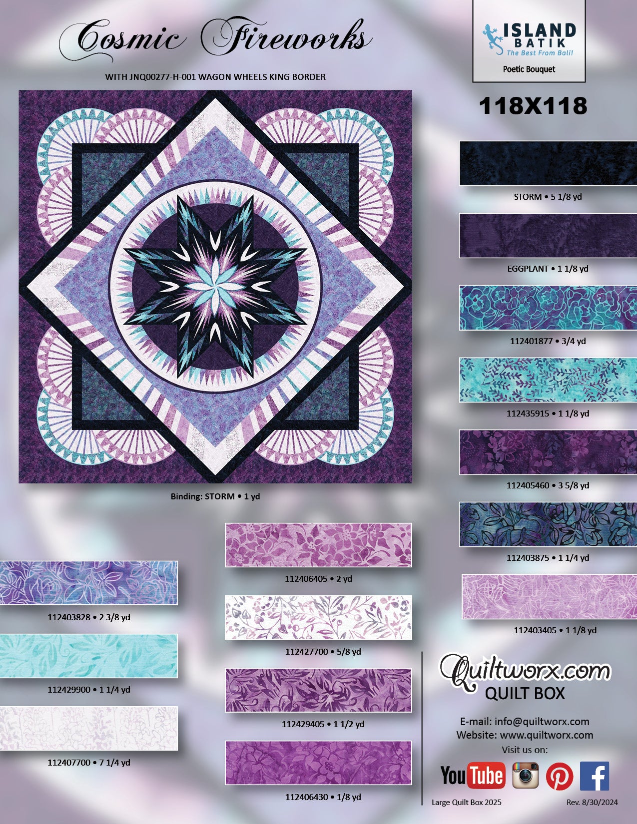 - Fabric Kit and Pattern in the Colorway of your Choice for the King Expansion borders only. You will need coordinating Q1, Q2, and Q3 boxes as well.
